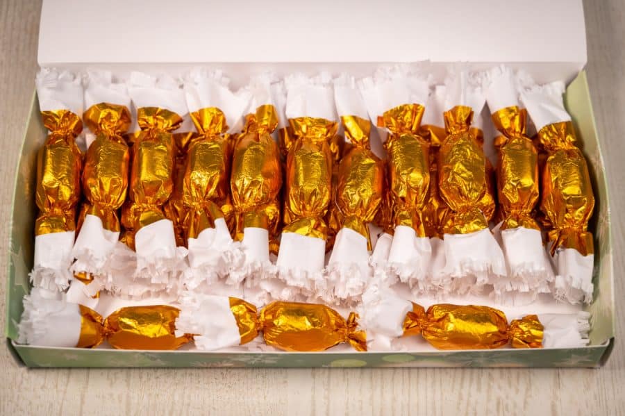 sült alma püré (45%), cukor, fehér csokoládé (kakaóvaj, tejpor, cukor, emulgeálószer: szójalecitin, természetes vanília aroma), mandula praliné (pörkölt mandula, cukor), tejszín, invertcukor, tejcsokoládé (kakaómassza, kakaóvaj, tejpor, cukor, emulgeálószer: szójalecitin, természetes vanília aroma), pektin NH, almaecet, dió grillázs (cukor, dió), só.